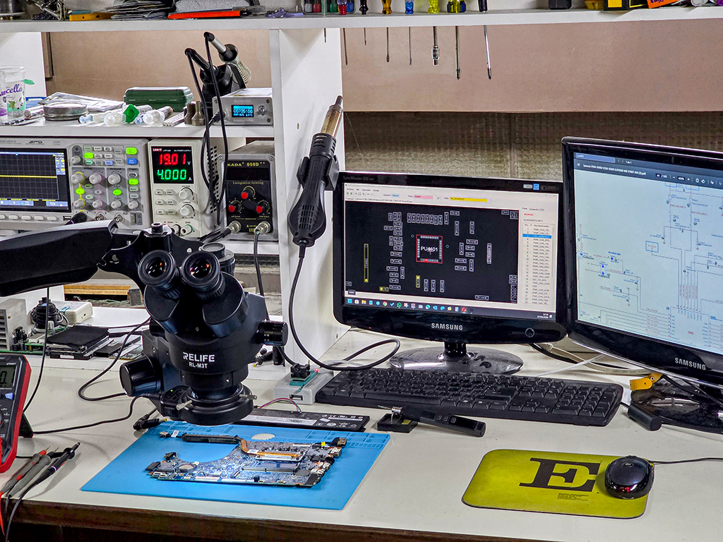 En nuestro laboratorio propio en Microcentro, realizamos las reparaciones más complejas que otros servicios técnicos prefieren no tomar. Garantía escrita en todas nuestras intervenciones de hardware. Contamos con instrumental de última generación para: